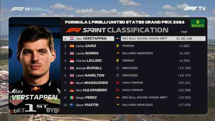 🏁F1美国大奖赛冲刺赛:维斯塔潘第一 塞恩斯、诺里斯分列二三 admin 2024-10-23 110 今日,F1美国大奖赛的冲刺赛已经结束。最终维斯塔潘顺利实现杆位第一带回,积分差距继续扩大,塞恩斯与诺里斯分列二三,勒克莱尔位居第四。 The End 标签:里斯美国