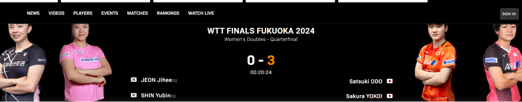 而在女双1/4决赛中,头号种子、韩国组合田志希/申裕斌0-3大藤沙月/横井咲樱惨遭淘汰,三局比分为:11-5,11-9,11-6。